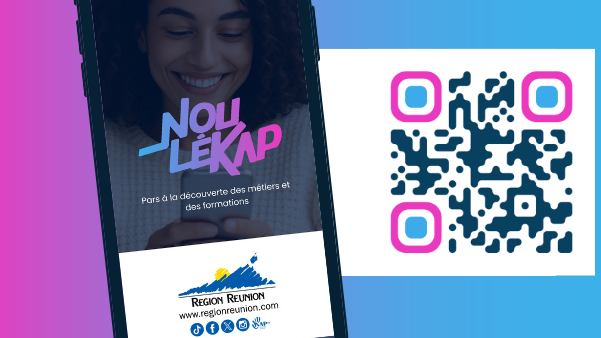 Tous les films réalisés dans le cadre de ces deux concours sont consultables sur la plateforme Parcours Métiers mais également sur l’appli d’orientation Noulékap développée par la Région Réunion. Cette appli 100 % gratuite et accessible à tous les élèves est téléchargeable sur les différents stores ou en scannant le QRCode ci-dessus.
